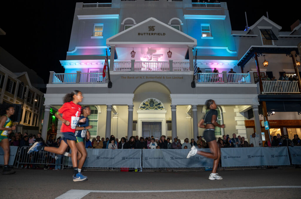 The Butterfield Mile begins outside the Number One Car Park on Front Street in Hamilton. Runners proceed west down Front Street, beyond the iconic bird cage for 1000m, and then loop back to head east until the turning point near the intersection of Spurling Hill and Front Street (the Longtail statues). Heading back west, runners will finish in front of the flag pole.